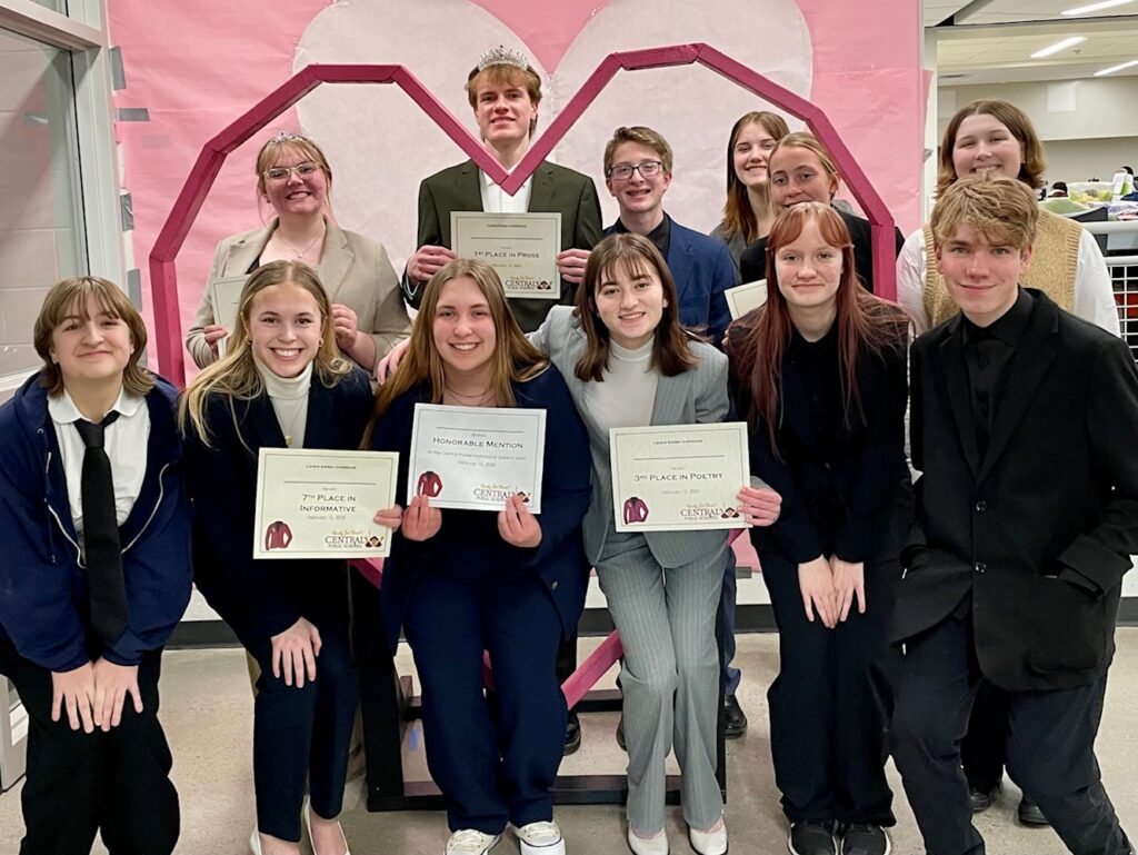 On an average Monday in March, the Annandale Speech team stood in a line in the middle of the AHS Commons. For an average Monday, the Speech team looked oddly out of place. Rather than their everyday school clothes, the team was dressed as though they were ready to compete in a high stakes meet. But it was a Monday. Not only were they dressed for success, they stood in line practicing their most intense, most “go ahead and mess with me” look. Head Speech coach Jennifer Kulm and assistant coaches Todd Nelsen and Wendy Storkamp could not help but smile. Sometimes you can’t plan for moments like these. Zahler Photography was front and center capturing the fierce looks. It had occurred to the coaches that many other teams from the school captured the grit and determination of the team on a banner to be posted for spectators and other teams to see. The obvious look of “yes we can.” And why not the Speech team?