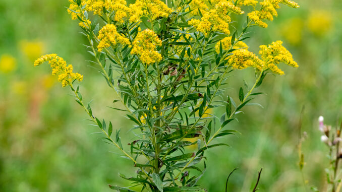 What you see is not always what you think it is. This could be my mantra for nature. At this time of year many people are suffering from fall allergies, often called seasonal allergies. The runny nose, itchy eyes and feeling run down is sometimes too much to take. So naturally, we look around for something to blame for these unpleasant symptoms and we see many bright yellow flowers. But you would be wrong.